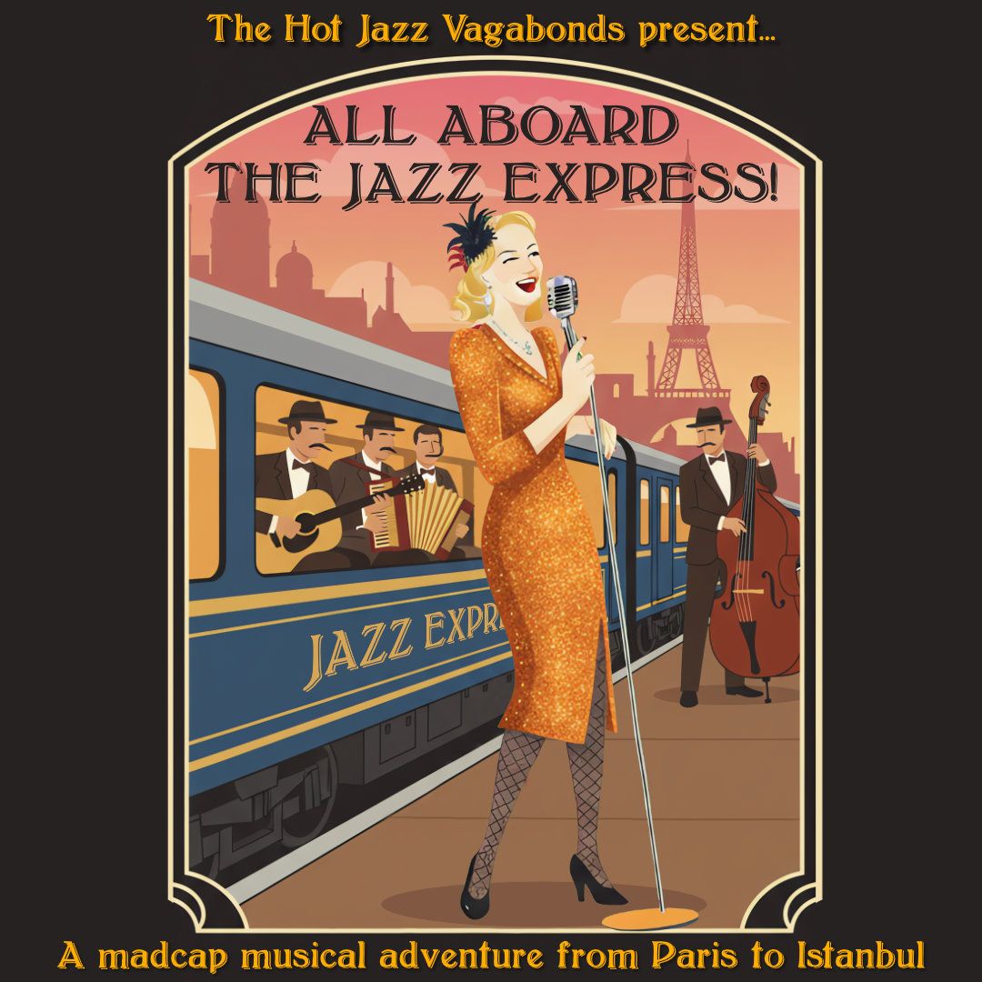 Join The Hot Jazz Vagabonds in the dining car of the world’s most glamorous train, where popular 1930s jazz, European song and swing unfold alongside a playful, mysterious nod to Agatha Christie–style intrigue. As the train pauses at glittering stations along its route, you’ll meet an array of colourful characters, each bringing their own musical flavour, mischief and surprise.